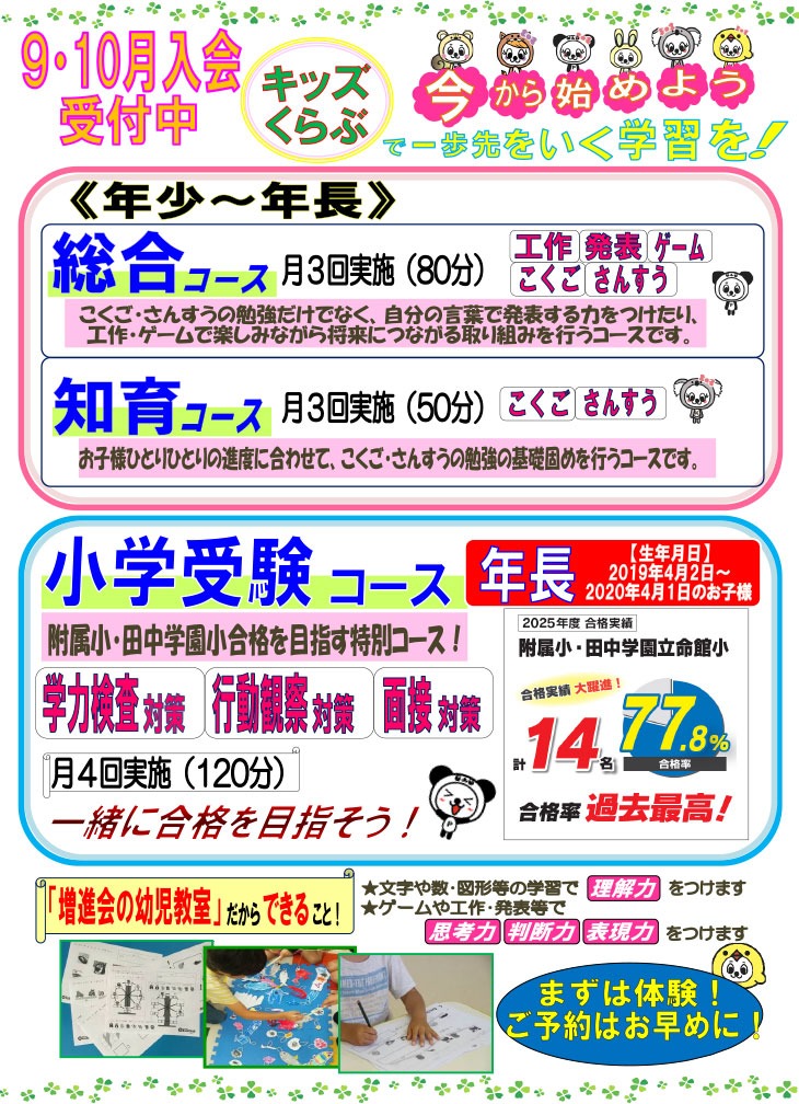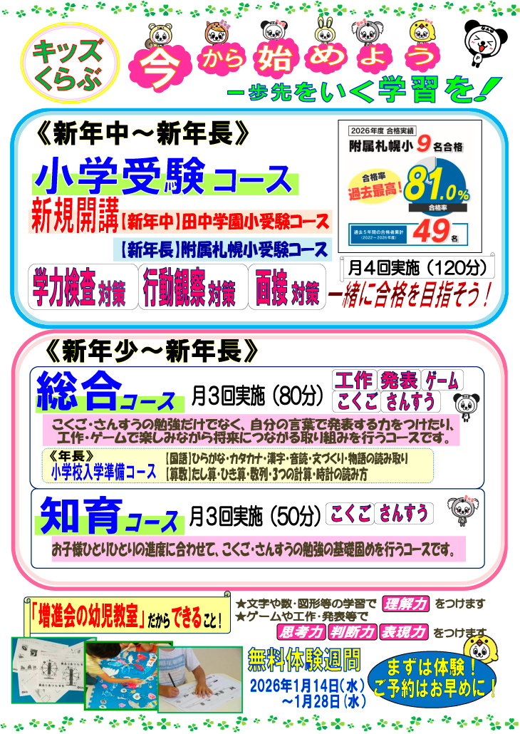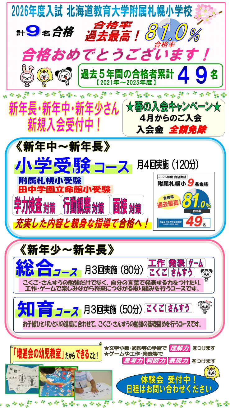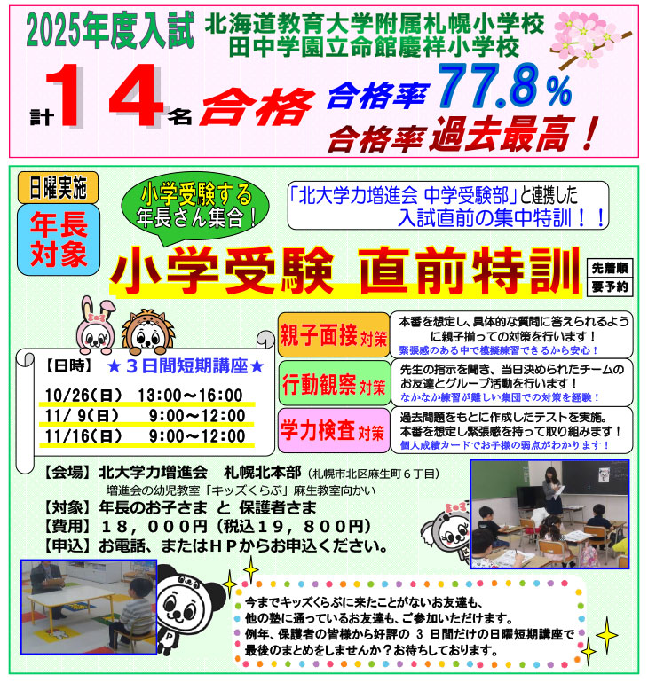 キッズくらぶ - 増進会の幼児教育、附属札幌小合格実績