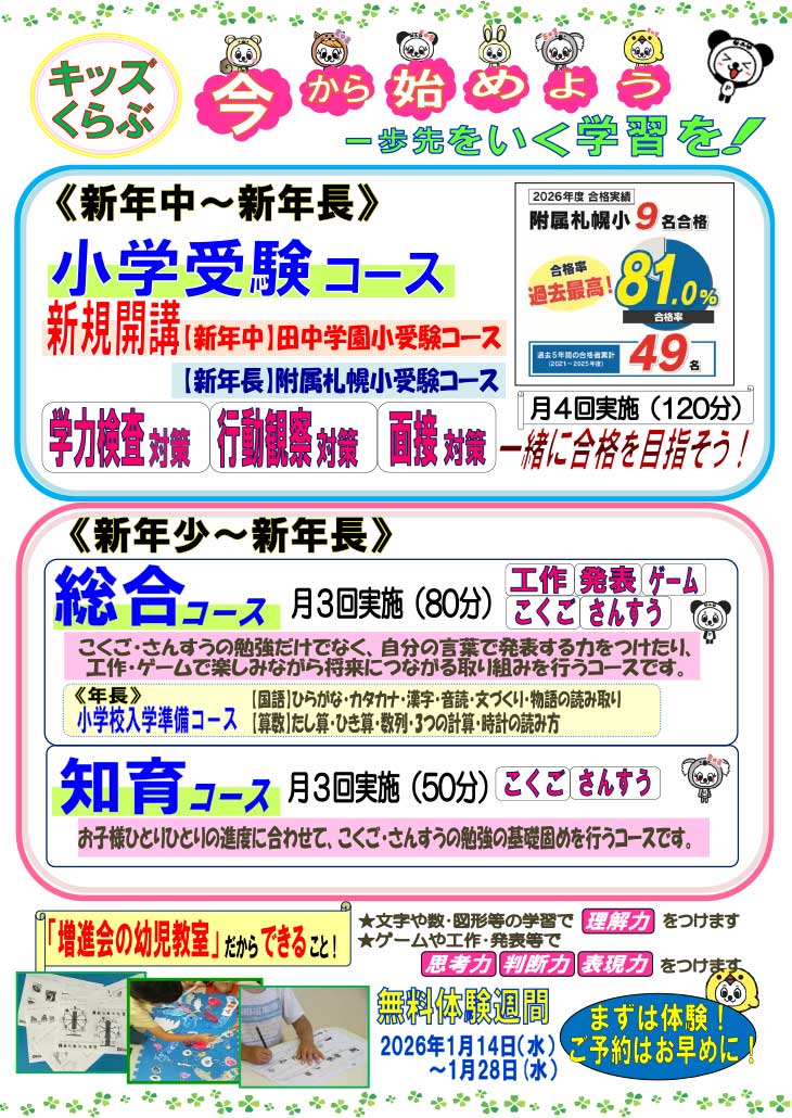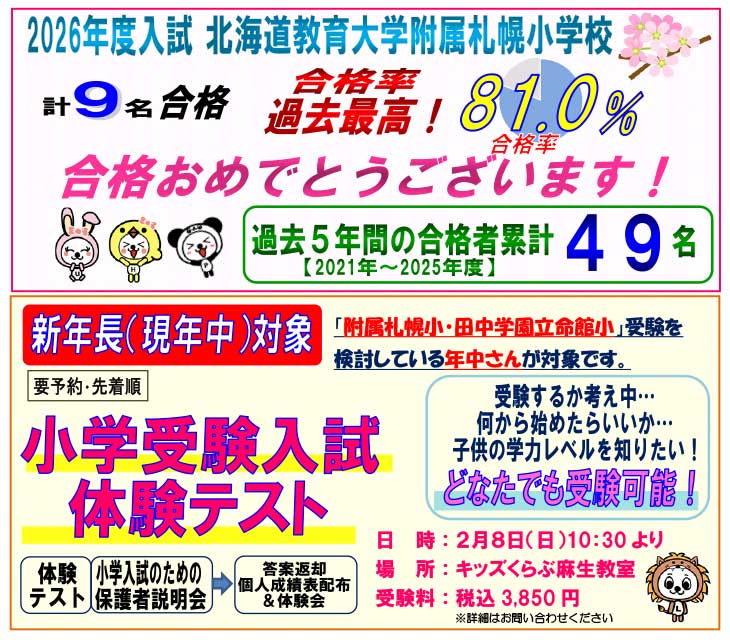 キッズくらぶ - 増進会の幼児教育、附属札幌小合格実績