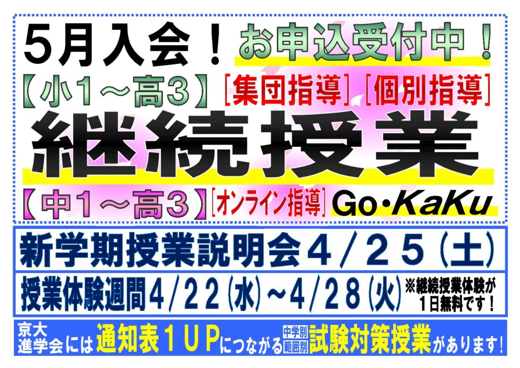 【個別指導】5月入会・授業体験受付中