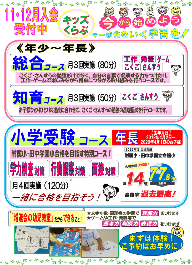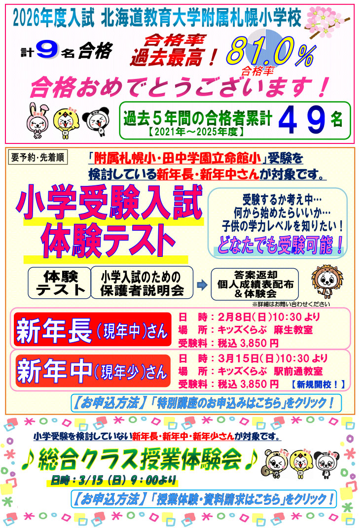キッズくらぶ - 増進会の幼児教育、附属札幌小合格実績