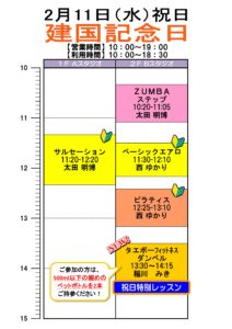 2月11日(水・祝) スタジオ特別タイムテーブル