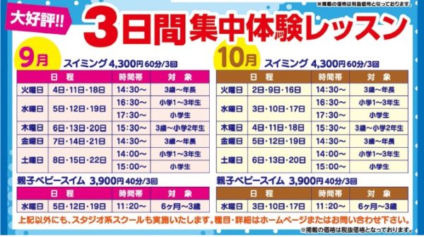 8/21(火)から新しく、9月・10月の集中体験レッスンの募集が始まりました。